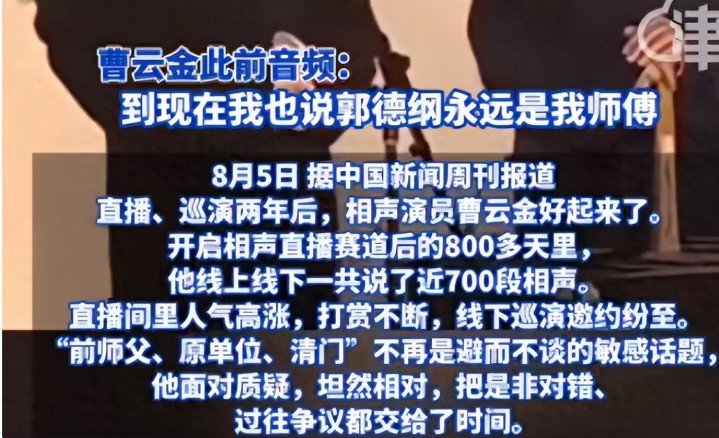而尚九熙的“炮弹”还冒着烟呢,八月五号同一天,德云社的老熟人曹云金也在一个采访里开了腔。