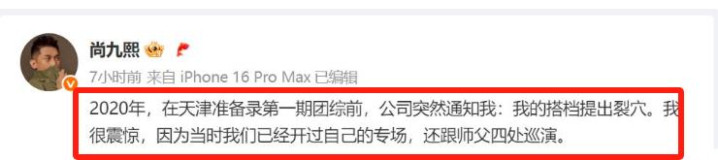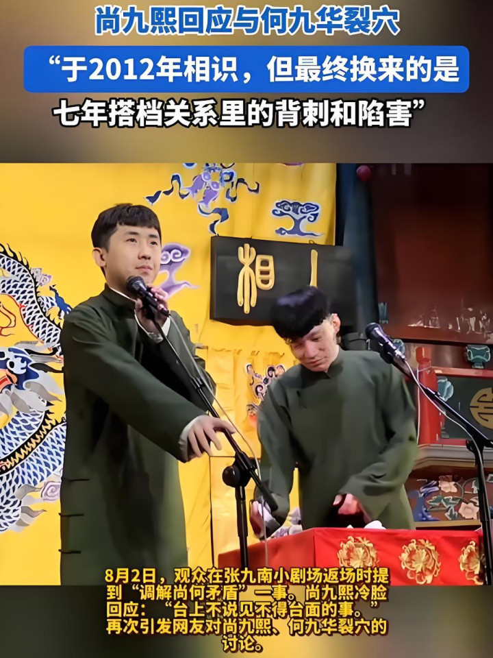 事情拖到2020年,德云社公司层面直接通知尚九熙:何九华正式提出裂穴,坚决不再搭档。