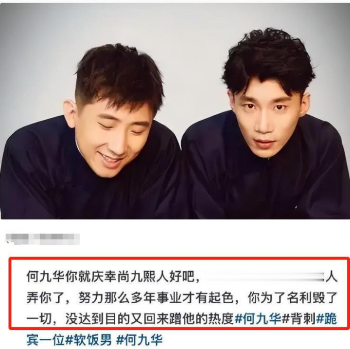 这些人怕尚九熙在节目上抖搂五年前两人搭档散伙的往事,借何九华的热度往上爬。