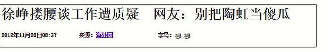 2012年11月,徐峥被拍到在街头搂着一名年轻女子的腰散步,随后两人共同进入酒店练歌房长达8小时。徐峥回应称该女子是学生,当时正在洽谈《泰囧》MV拍摄事宜,并强调现场共有6人。不过网友并不买账,喊话徐峥别把陶虹当傻瓜。