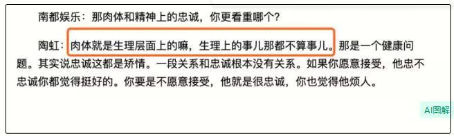 其实陶虹曾正面回应过徐峥的这些“花边新闻”,她表示“婚姻是两个人的合谋,没有标准答案,只有是否愿意接受的默契”“肉体出轨不算出轨”“谈忠诚是矫情”。