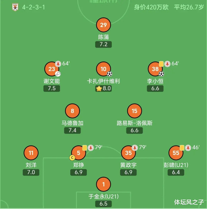 赛后从国内数据网站的评分来看,泰山队这边得分最高的是卡扎伊什维利,他得到了8.0分的全场最高分,也是当选了全场最佳球员,可以说卡扎伊什维利最近状态还是非常火热的,加上本场比赛的进球,卡扎伊什维利已经是连续4轮比赛取得进球了,在克雷桑最近状态不佳,陷入到很长一段时间的进球荒里,是卡扎伊什维利的爆发,带领球队继续前进的。
