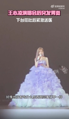 8月16日晚,王心凌在演唱会上透露,自己前一晚在五棵松演唱会后下台狂吐,然后紧急送医并连夜输液。由于是连续开唱,王心凌昨天只能喝白粥和白吐司,她表示工作人员怕她唱着唱着没力气,还拿着白吐司在台下准备,但自己状态还OK。