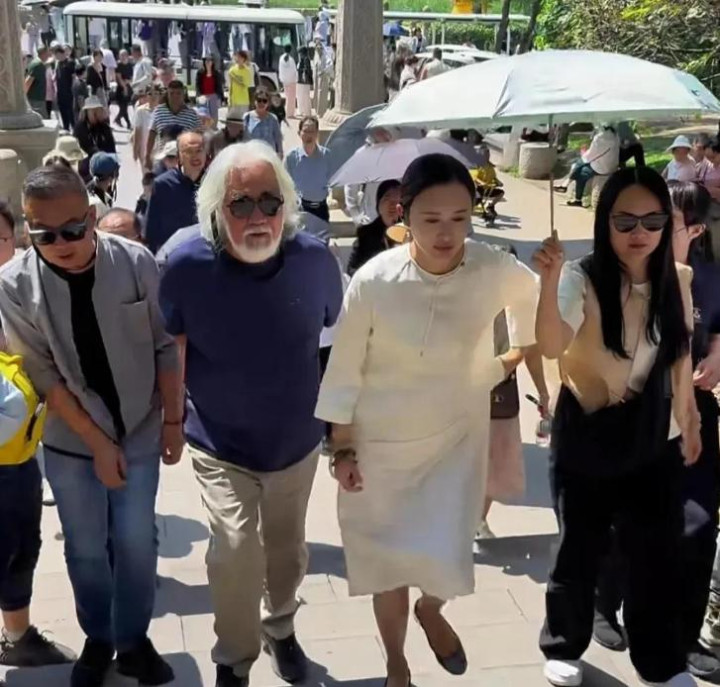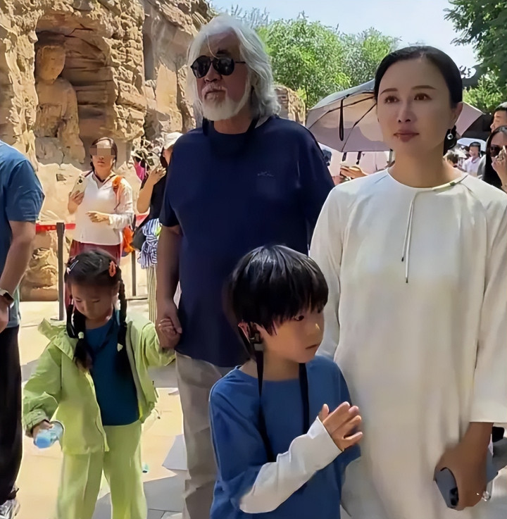 在云冈石窟那段火遍全网的视频中,张纪中气喘吁吁地扶着栏杆缓缓前行,怀里还紧紧抱着最小的女儿。