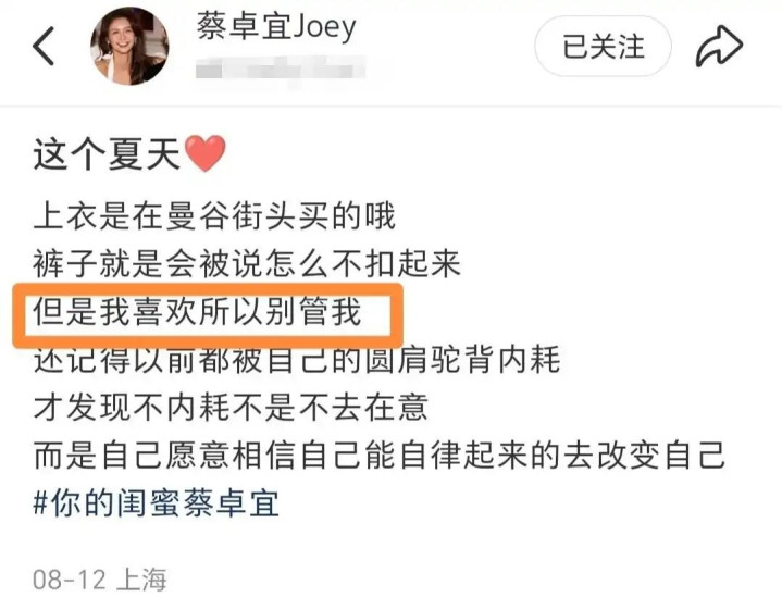 蔡卓宜的 "别管我" 和宣云的 "不系扣",本质上都是不想被外界眼光绑架。毕竟在碧海蓝天面前,舒服比什么都重要。