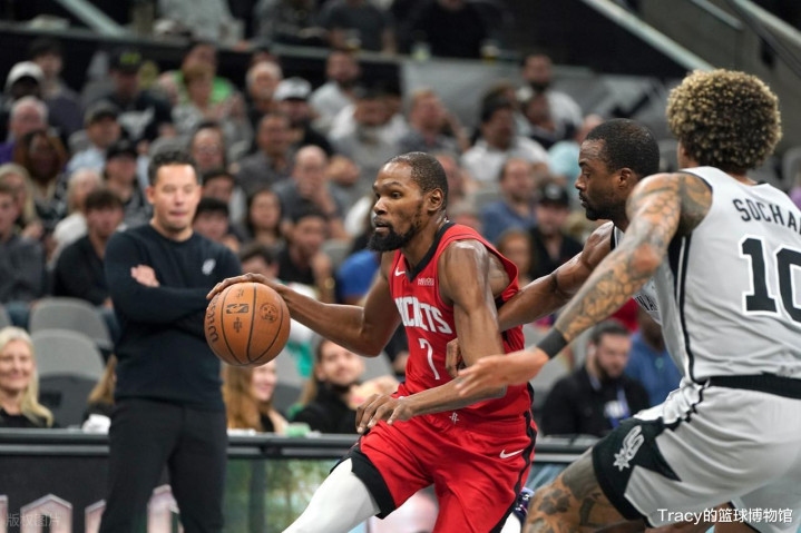 第三节他被文班亚马篮下隔扣,自己连得6分以后,然后马刺疯狂包夹杜兰特,阿杜不断失误。这一节杜兰特打满,砍下11分,有3次失误。