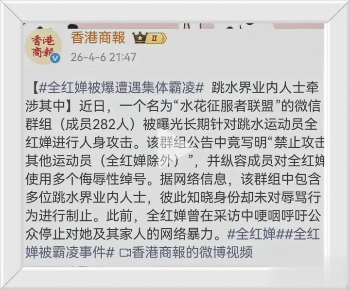 近日,282人的“水花征服者联盟”微信群,让国人见识到了,什么叫群怕出名猪怕壮?建群几年,默默无闻。臭味相投,肆无忌惮。建群目的很明显,目标很明确。就是要辱骂、网暴为国争光的全红婵。就是为围攻、谩骂而建群,为羞辱、发泄而入群。