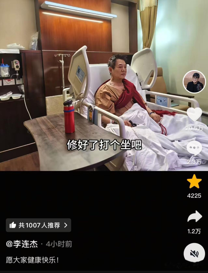 8月17日,李连杰晒自己在病房的照片引发了网友们的担忧,纷纷猜测他到底得了什么病,要不要紧?