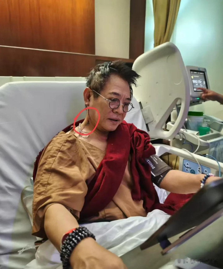 虽然李连杰方面没有证实,但从他做完手术的照片中可以看到,在他的脖子上新添了一道触目惊心的刀口,估计长度得有5厘米,里面还插着细细的管子看着十分揪心。