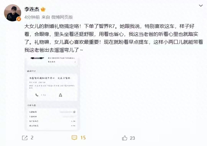 毕竟他现在已经无戏可拍了,很多年都没什么收入,然而家里又有老婆和三个女儿要养开销巨大,纵使他攒下了一些积蓄也难以应对这多大的开销,这么多年估计已经挥霍得差不多了,导致前一阵子大女儿结婚李连杰才送了一辆30多万的车,不管是广告还是真的,都说明他是真没钱了,否则不可能买这么便宜的车或者接这样的广告。
