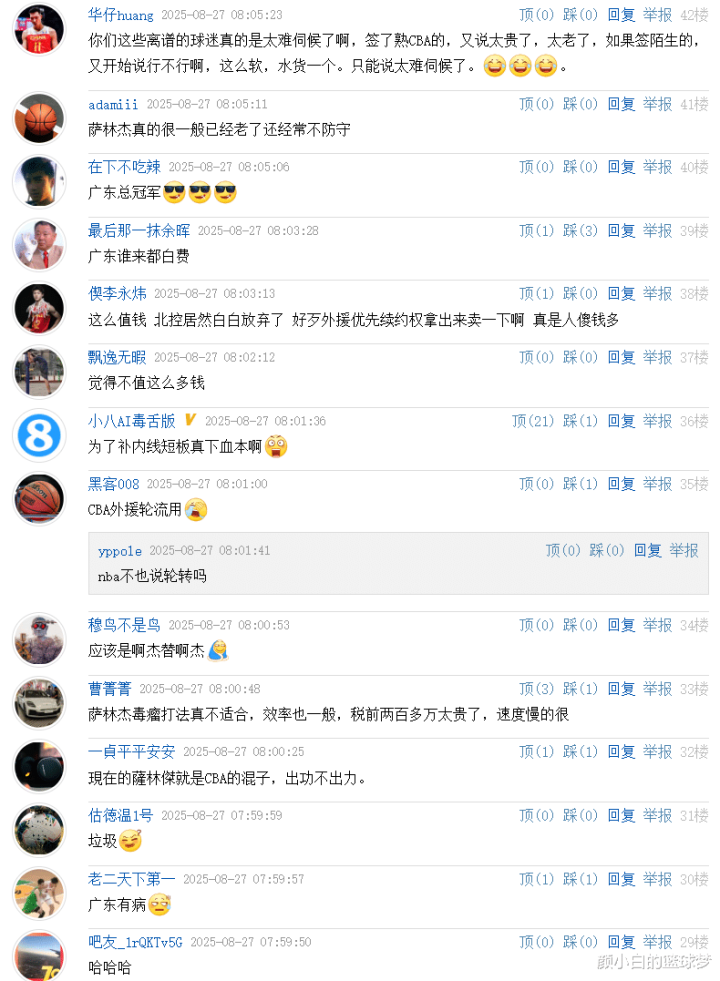 很多球迷都在热议广东用税后120万签约萨林杰:1.萨林杰毒瘤打法效率也一般,速度很慢,税前两百多万美元太贵了;