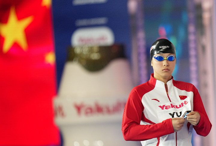 7月28日,余依婷在2025年世界游泳锦标赛女子100米蝶泳决赛中。新华社记者 夏一方 摄
