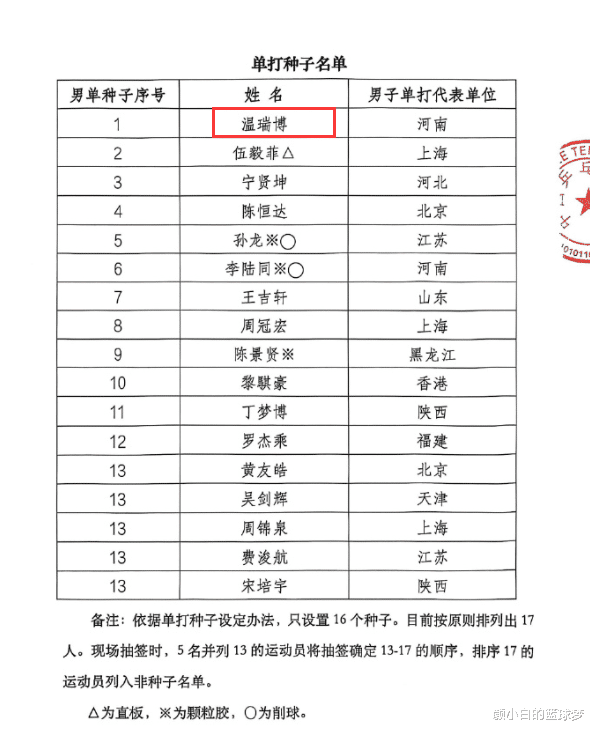 温瑞博在全运会青年组的单打种子名单中排名第一,这位18岁的国乒小将是本次青年组男单的头号种子,他在全运会U18男团的表现也的确是非常不错,河南队目前能拿到二连胜都要感温瑞博的发挥。