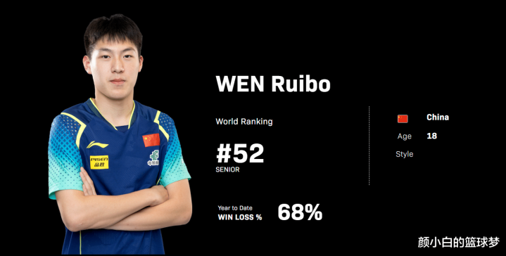 在WTTU19青年组的比赛温瑞博就打得不错,U19亚青赛男团冠军、U19亚青赛男单冠军、U19亚青赛男双冠军、WTT青少年大满贯U19男单亚军。