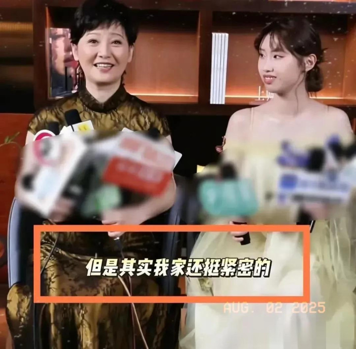 母女二人同台时,徐帆不时为女儿整理衣裙,上下台阶时自然伸手搀扶,眼中满是温柔关爱。徐朵则乖巧地跟随母亲,等待徐帆落座后才轻轻坐下,展现良好家教。