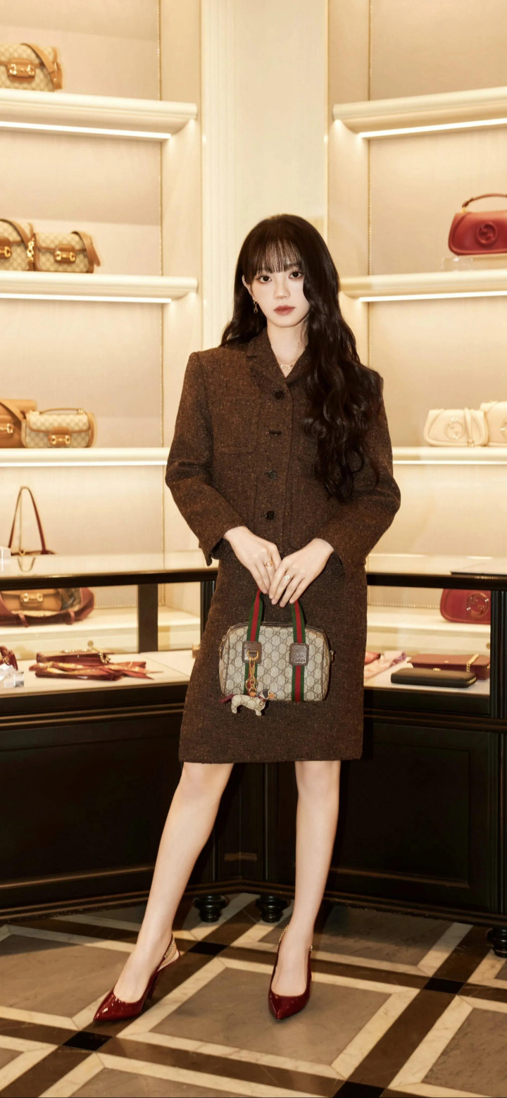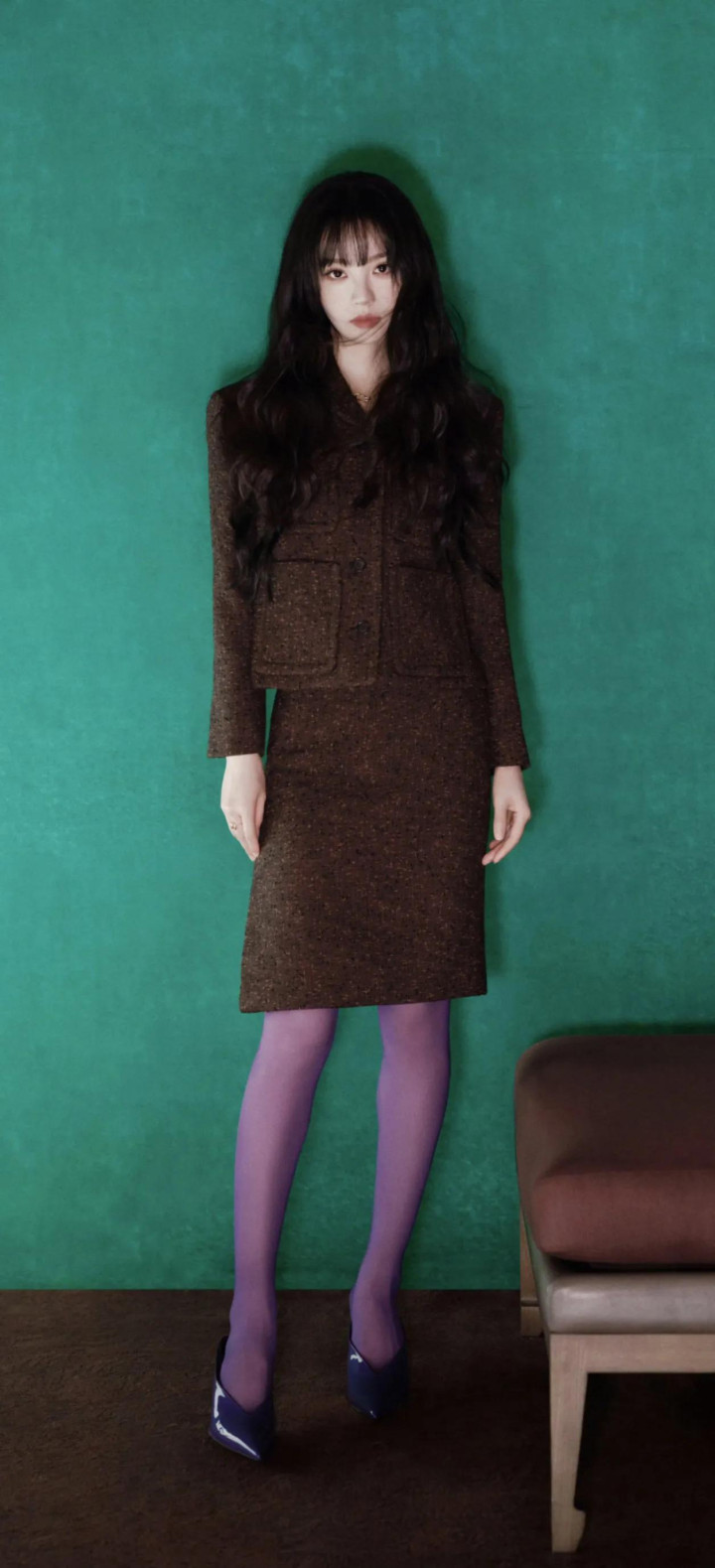 田曦薇冷脸千金风格突破,身着2025秋冬深棕色羊毛套装,搭配贴头皮卷发与红色尖头高跟鞋,紫色丝袜美腿,颠覆既往甜妹形象,“财阀恶女”“冷面大小姐”美图,田曦薇壁纸的优越骨相与强大气场,绝了!