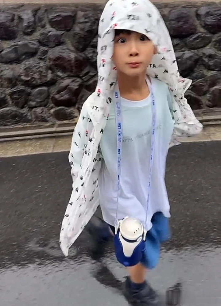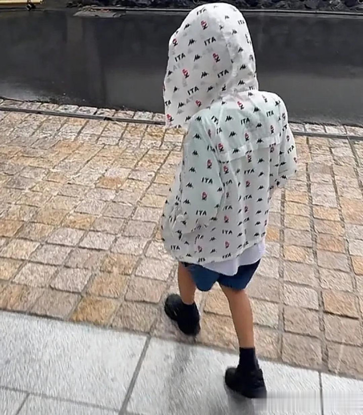 杨子和孩子们去游玩的地方正好赶上下雨,父子三个都没有雨伞,安麟直接戴上外套的帽子往外走,小男孩就是皮实好养活。