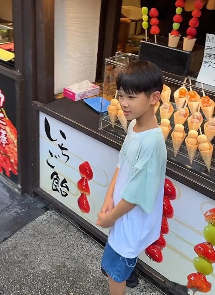 路过卖小吃的摊位,杨子很宠溺给小儿子买甜品,安麟体型比较瘦,小时候的婴儿肥全部褪下去了,侧脸已经有帅哥的潜质了。
