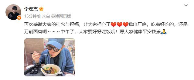 最新消息,8月18日中午,李连杰更新社交账号报平安: