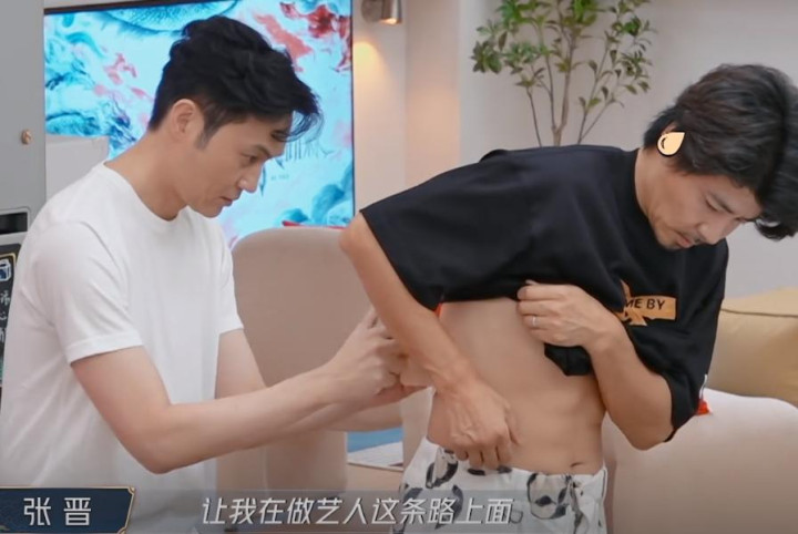张晋在节目中也公开晒出了自己的腰,看上去并不是太胖,只是腰间的确也有点肉感。