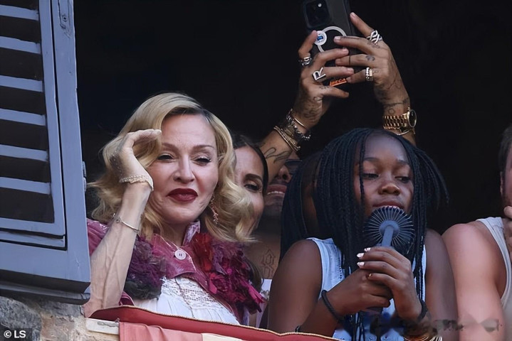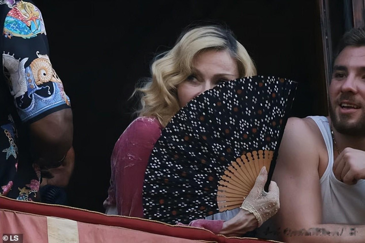 但是,当她抬起胳膊,她小臂上明显凸起的青筋无时无刻不提醒着人们,麦当娜已经67岁了。她拿了一把黑底白花的扇子,看来天气确实炎热。