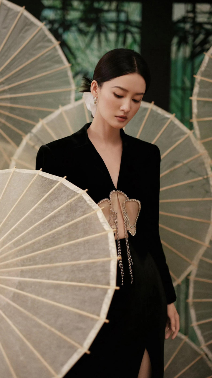 #李沁东方美学氛围感大片# #李沁黑裙配油纸伞好绝# 被李沁这组大片惊艳到!黑色裙装衬得她优雅大气,云形装饰与链条垂落添高级,手持油纸伞的李沁,自带古典神秘的东方韵味,像从烟雨画卷中走出,东方美学氛围感拉满,让人移不开眼