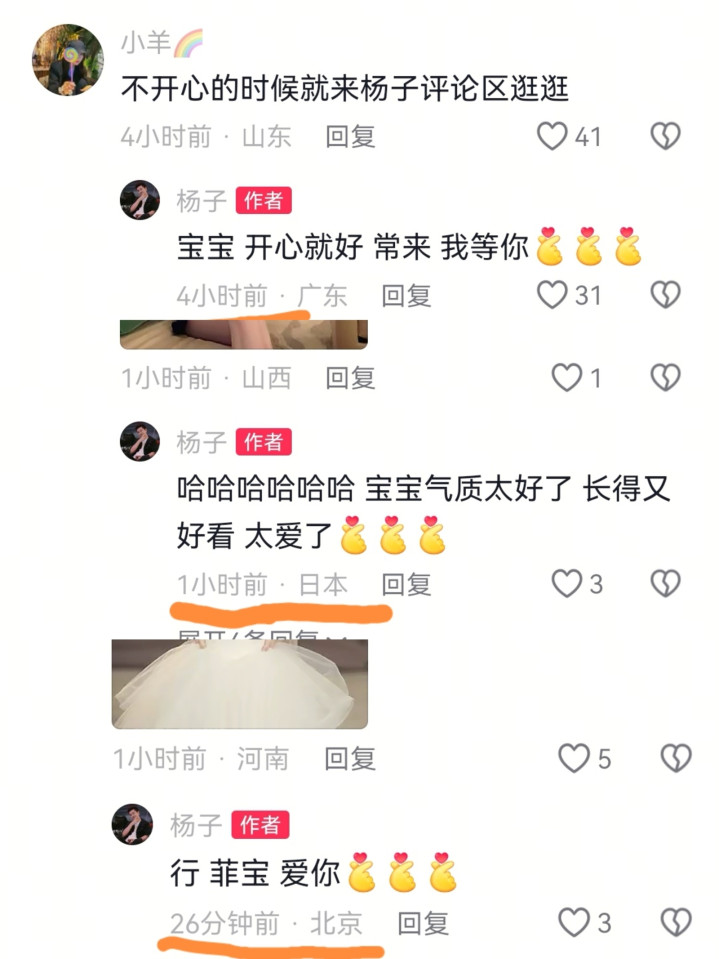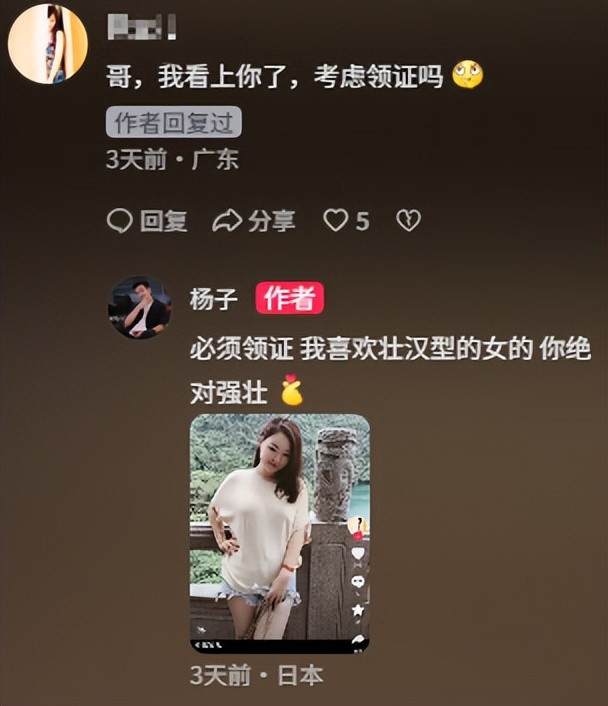 有很多女网友在评论区说要跟杨子处对象,杨子也不藏着掖着,有一个算一个,都要跟她们去“领证”。