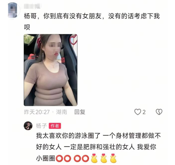 光这还不够,看评论区杨子的截图就知道,杨子还点进去了女网友的个人主页端详对方,似乎是真的在考虑能不能“配上自己”。