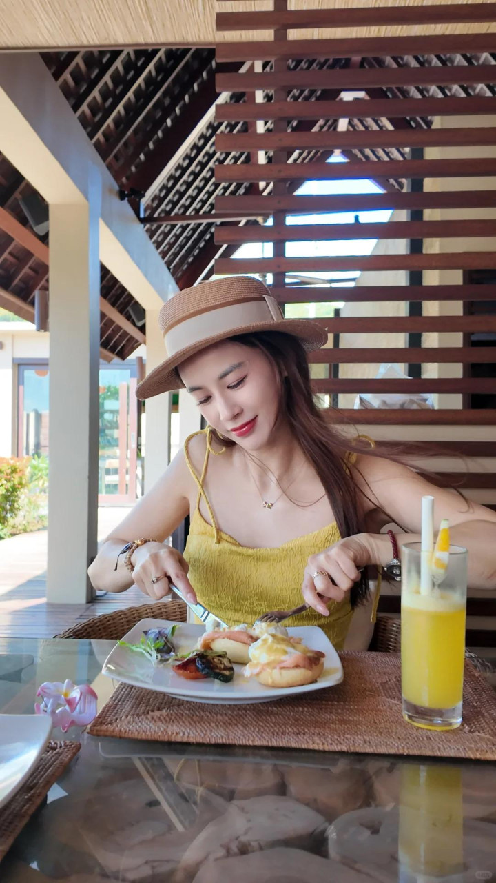 她还悠闲的在海边吃西餐,不用带娃不用工作,更不用被老公唠叨,这日子简直不要太美好。