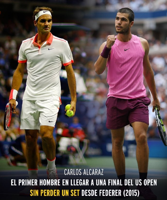 在打进美网决赛后,阿尔卡拉斯也创造了多项神奇纪录。首先,这是22岁的阿尔卡拉斯生涯第2次进美网决赛,上次他成功夺冠。