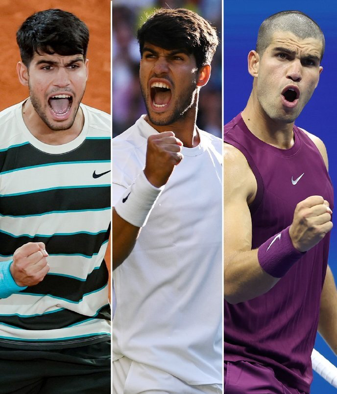 第4,这是阿尔卡拉斯生涯首次单赛季打进3个大满贯决赛。从今年法网开始,阿尔卡拉斯连续3个大满贯闯入决赛。